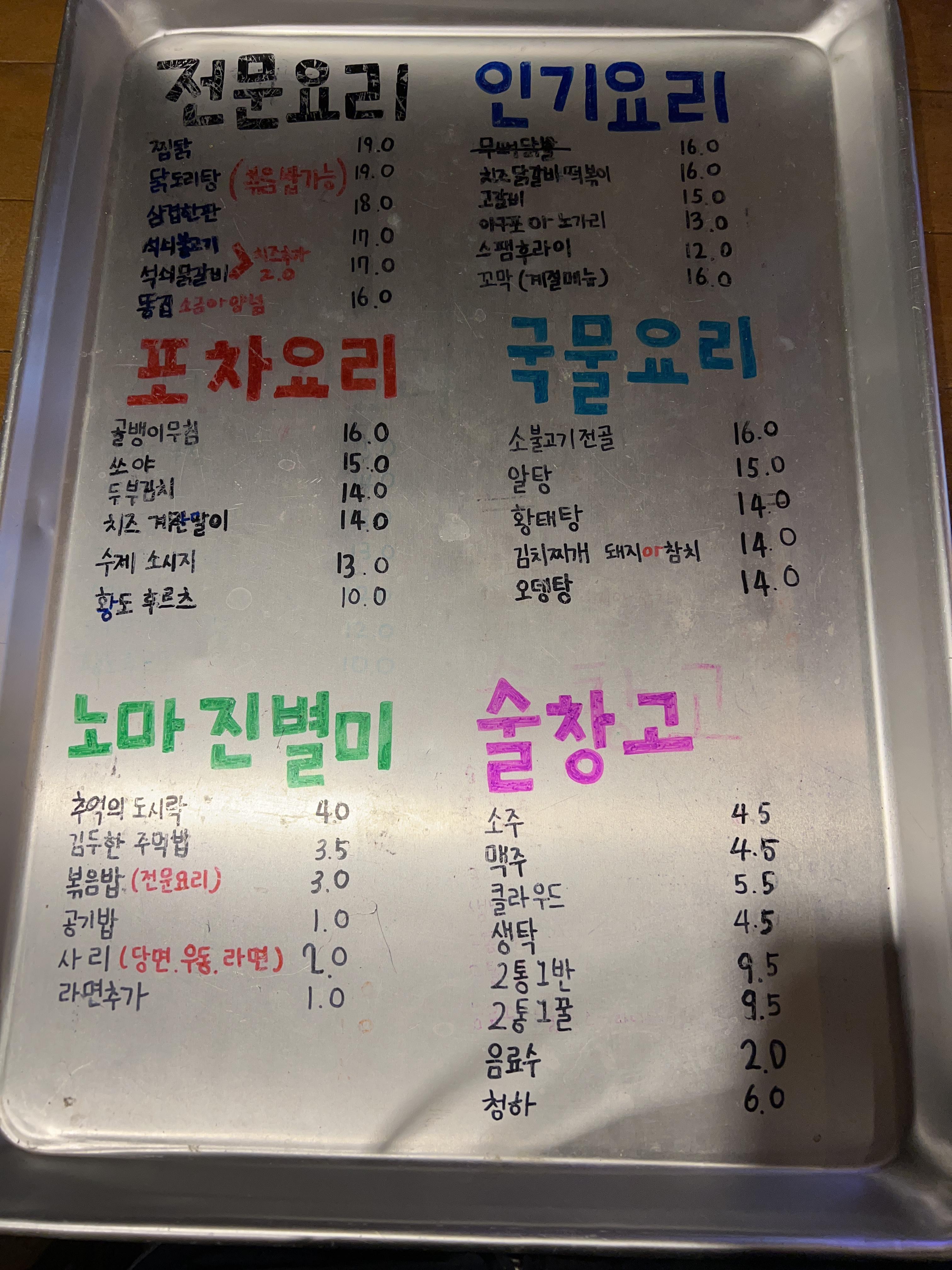 저는 평소 늘 어디를 가거나 무엇을 하든지 간에 마케팅적 관점에서 사물과 현상을 보고 관찰 내지는 분석해보는 것을 좋아합니다. 그것이 우리의 평소 일상과 밀접한 경우라면 더욱더 그렇지요. 지난 토요일 저녁에는 늦은 식사를 위해 옷을 주섬주섬 입고 흐린 날씨에 곧 비가 쏟아질 듯하여 우산도 하나 챙겨서 짝꿍과 동네를 나갔습니다. 원래는 가보려던 실내포차가 있었는데 비 오는 날씨에 걸어가기에는 거리가 좀 멀어 보여 가까운 곳을 들어갔고 포차였던 것 같습니다. 와이프와 저는 술보다는 안주를 늘 푸짐하게 여러 개 시켜놓고 즐겨먹는 걸 좋아해서 가게 앞 여러 안주가 이미지까지 잘 안내된 곳으로 갔는데 뭐 특별할 것 없는 조금은 시끌벅적한 곳이었지요. 그래도 다행히 저희 자리는 가게서 창가 자리 2군데 중 한 곳으로 앉게 되었고 바로 메뉴판이 나오자 골뱅이와 고갈비 그리고 막걸리를 한 병 시켰습니다.