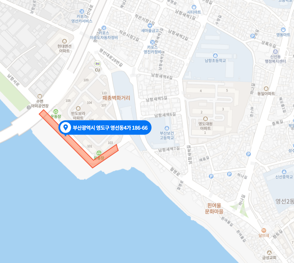 3) 흰여울 민영주차장 : 12면 주소 : 영선동 4가 504