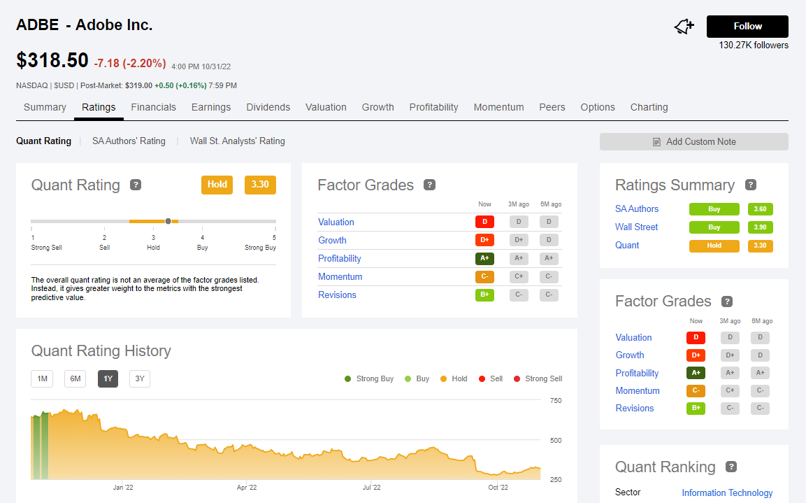 그리고 여전히 주가 퀀트 레이팅은 3.3 , 보류 상태를 받고 있고요