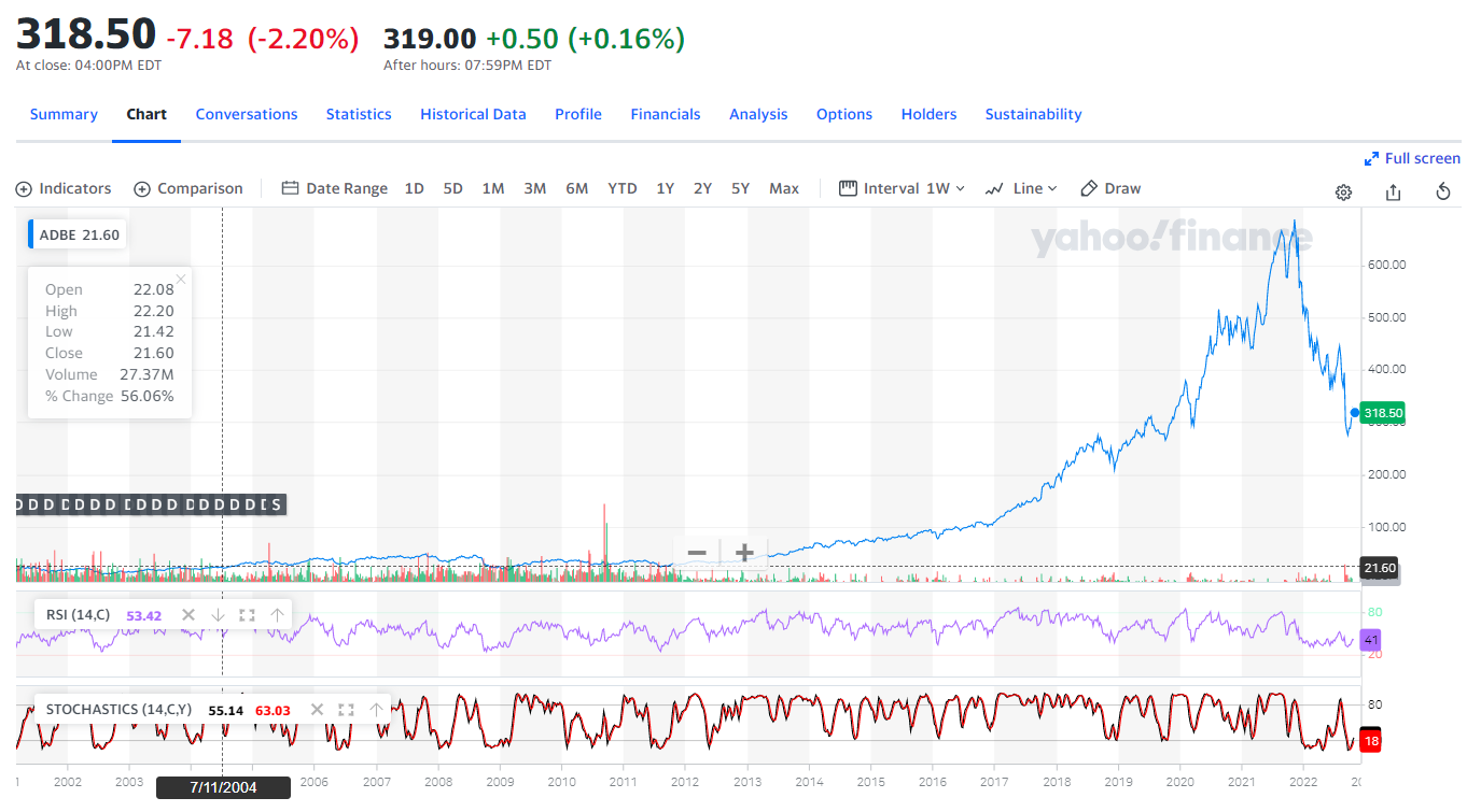 어도비(adbe) 주가는 현재 종가일 기준으로 318달러 정도 형성을 하고 있는데요