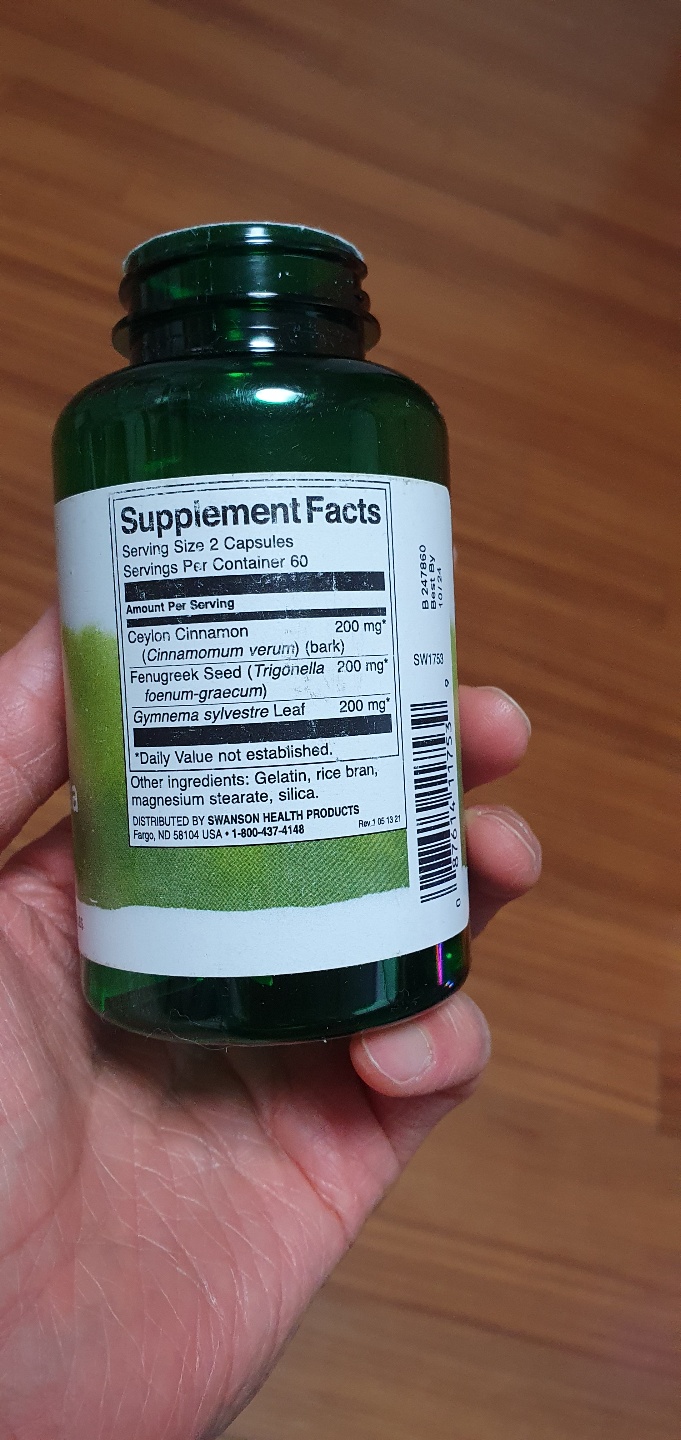 정확한 제품명은 swanson full spectrum cinnamon fenugreek & gymnema 120 capsules입니다. 아마존에서 약 9.1$에 살 수 있는데 한 번에 6개까지 가능하고 직구를 하실 수 있는 분들은 한번 고려해보시는 것도 괜찮을 것 같습니다.