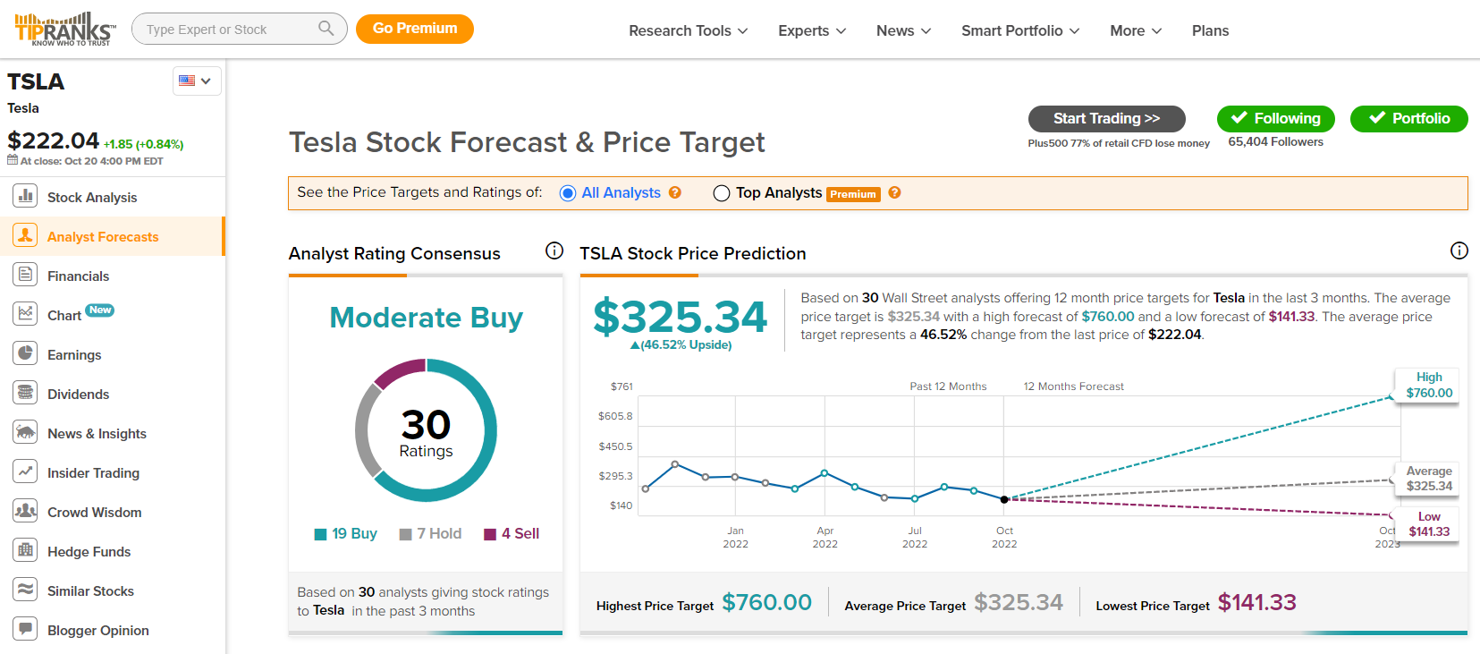 주식시장의 주가는 신의 영역이라고들 말씀하셔서 정말 예측하기가 어렵겠지만 그래도 이렇게 아래처럼 월스트리트의 전문가들과 매체에서 꾸준히 미국 주식시장에 상장된 기업들의 평가를 정기적으로 하고 있습니다. 바로 아래 팁 랭스에서는 테슬라 주가전망을 평균 약 325달러로 예상하고 최대 760달러, 최소 141달러로 보고 있습니다. 그리고 30여 명의 analyst들 중 약 19명이 매수를 외치고 있는데요. 여러분들은 어떠세요.. 이 정도 테슬라 주식 222달러면 적정할까요? 아니면 더 떨어질 수도 있을 것 같으세요? 주가라는 것이 기업의 가치와 수렴한다고들 말은 하지만 이렇게 요즈음 전 세계적으로 물가상승과 전쟁 이슈 등으로 인해 금융시장이 불안할 때는 투자심리가 위축되어 그 누구도 정말 한 치 앞을 내다볼 수가 없는 것 같습니다. 그래서 제 개인적으로는 테슬라 주가전망은 조금 더 부정적으로 보고 있기는 한데요.