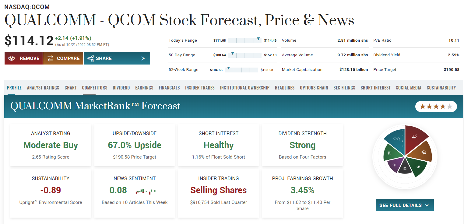 4.29의 퀀트(Quant)점수,최소 57%대의 상승여력이 있는 퀄컴(QCOM)에 눈길이 다시한번