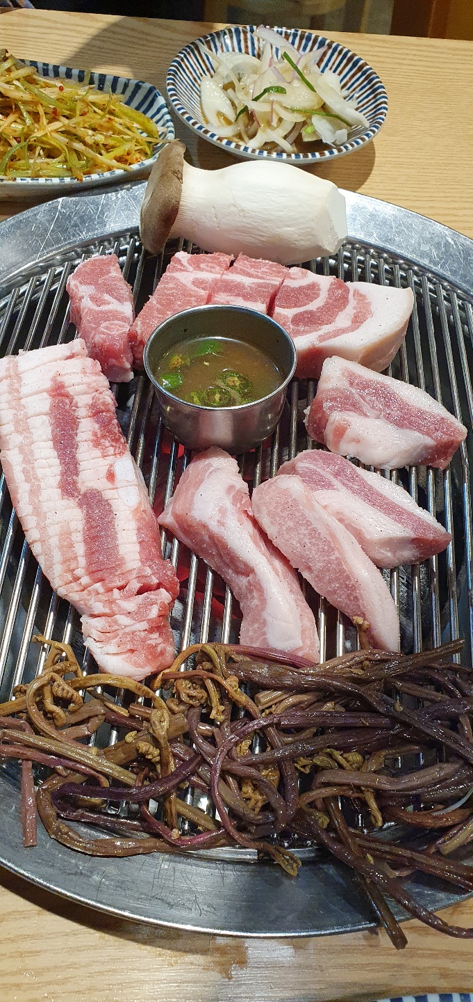 보통 삼겹살, 오겹살 집에 가면 반찬류 중에 젓갈류들이 궁합을 이뤄 나오는데 이곳도 마찬가지 멸치 젓갈이 나왔습니다. 그런데 한 가지 더 눈에 띄는 소스, 반찬이 나왔는데 바로 그것은 '명란젓갈'이 떡하니 나오는 것이 아니겠습니까? 그래서 고기를 구워 명란젓갈을 조금 올려서 먹으니 참나 이런 고기, 맛도 있네. 그리고 기본 반찬류들 중 대체 이건 왜 여기 나오지 하는 야채가 있었는데 바로 또 그것은 고사리였습니다. 평소 제 식생 활중에서 고사리는 주로 제사, 차례 지낼 때야 구경할 수 있는 별 흥미롭지도 않고 좋아하기 어려운 나물이 고사리인데 이것이 고깃집에 나오니 더군다나 숯불에 구워 먹으라니 좀 생소하지만 맛있다고 해서 숯불에 굽기 시작했습니다. 이미 물에 데쳐서 바로 먹을 수도 있지만 숯불에 구우니 수분이 조금 사라져 식감이 더 쫄깃해지고 고기와 어우러지니 특유의 고사리 향이 고기의 느끼한 맛을 잡아주는 듯한 묘한 맛이 났습니다. 완전히 고사리의 재해석이라고 할까요? 아무튼 전혀 이전에 경험해볼 수 없었던 돼지고기와 고사리의 궁합에 제 입맛은 흥이 한껏 올랐습니다. 이런 기본 반찬이 돼지고기와 궁합을 이루니 등급이 좋은 한우보다도 맛과 향, 식감이 더 나은 듯했습니다. 왜냐하면 집 앞에 부산에서 유명한 한우고깃집이 있어서 자주 가는 편인데 그곳의 한우 풍미와 비교해서 오히려 나은 거 같았습니다. 아무튼 저의 돼지고기, 삼겹살, 오겹살에 대한 약간의 편견이 완전히 사라지는 순간이었습니다. 사실은 이곳 코소 롱 식당을 다녀온 지 조금 지났는데 오늘 다시 아는 지인과 함께 갈 예정이라 생각이 난 김에 이렇게 포스팅을 하게 됐습니다. 돼지고기 삼겹살 맛집을 많이 다니지는 않았지만 기존에 삼겹살, 오겹살 돼지고기 구이 식당을 하시는 분들이라면 기본 반찬 나물 메뉴에 고사리 한번 직접 고기와 함께 구워서 드셔 보세요. 그리고 명란 젓갈도요. 젓갈류를 좋아하지 않는 저의 초등학생 입맛에도 이런 반찬은 정말 돼지고기와 잘 어울리고 풍미를 더해주는 것 같습니다. 새로이 고깃집을 창업하실 분들도 한번 기본 찬 메뉴에 한번 테스트 겸 해서 드셔 보시고 결정해보세요. 별것 아닌 것처럼 보이는 기본 찬들이 주메뉴를 더욱 빛나게 하고 풍미까지 살려 사람들의 재방문을 이끌 수 있는 포인트가 될 수 있겠다는 생각입니다. 기회가 되시는 분들은 꼭 한번 가셔서 경험해보세요. 그럼 오늘도 찾아주신 모든 분들의 건강과 평안을 기원합니다. 감사합니다.
